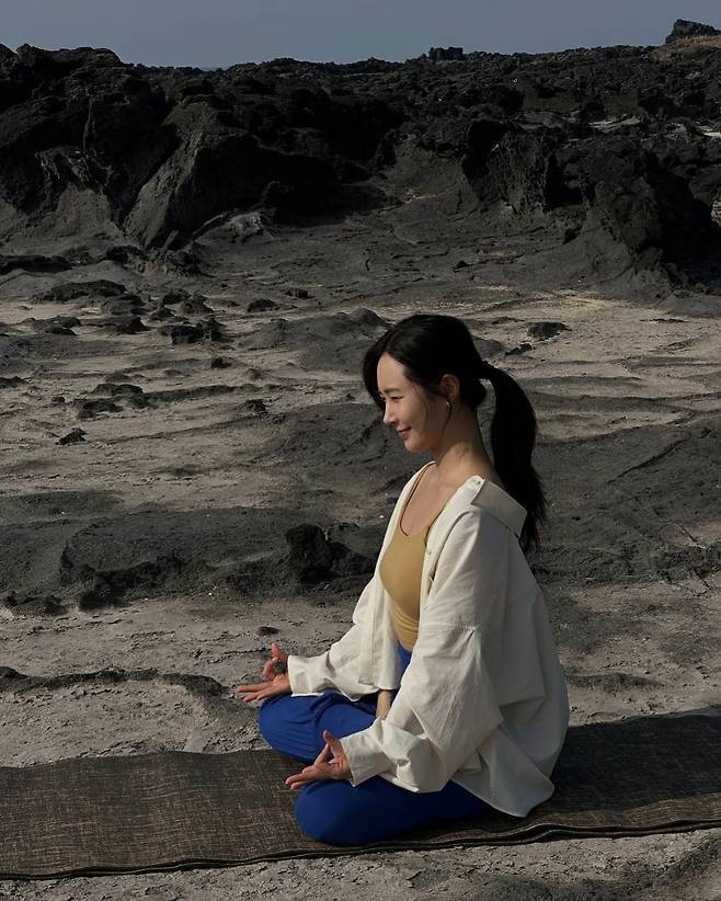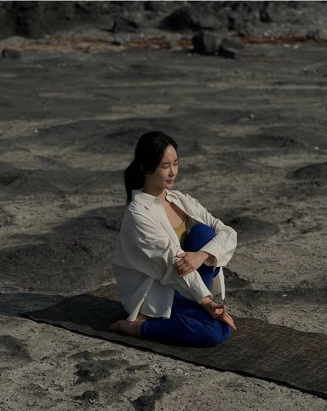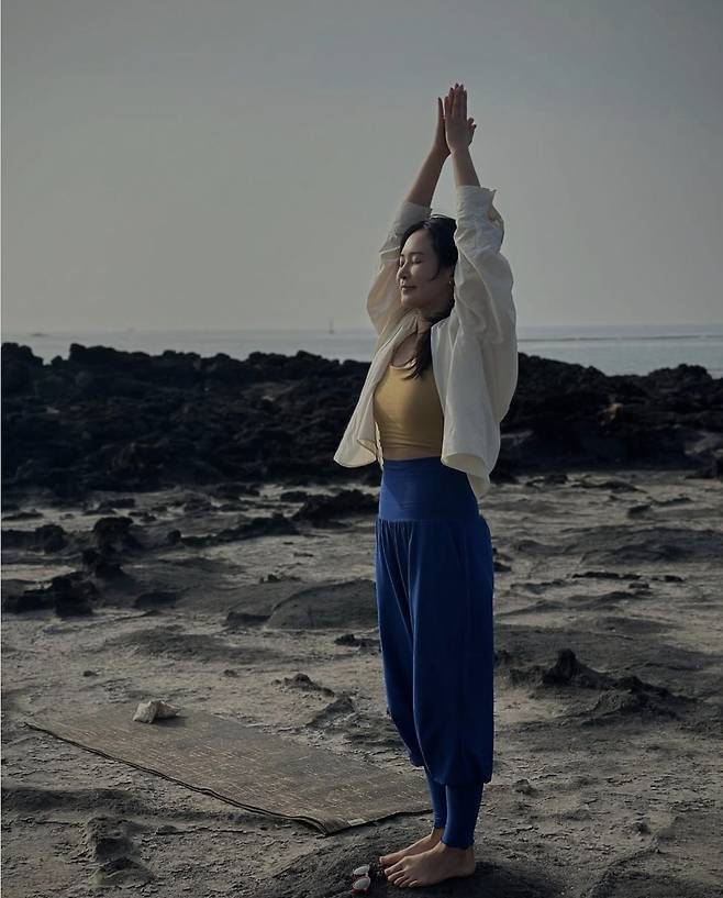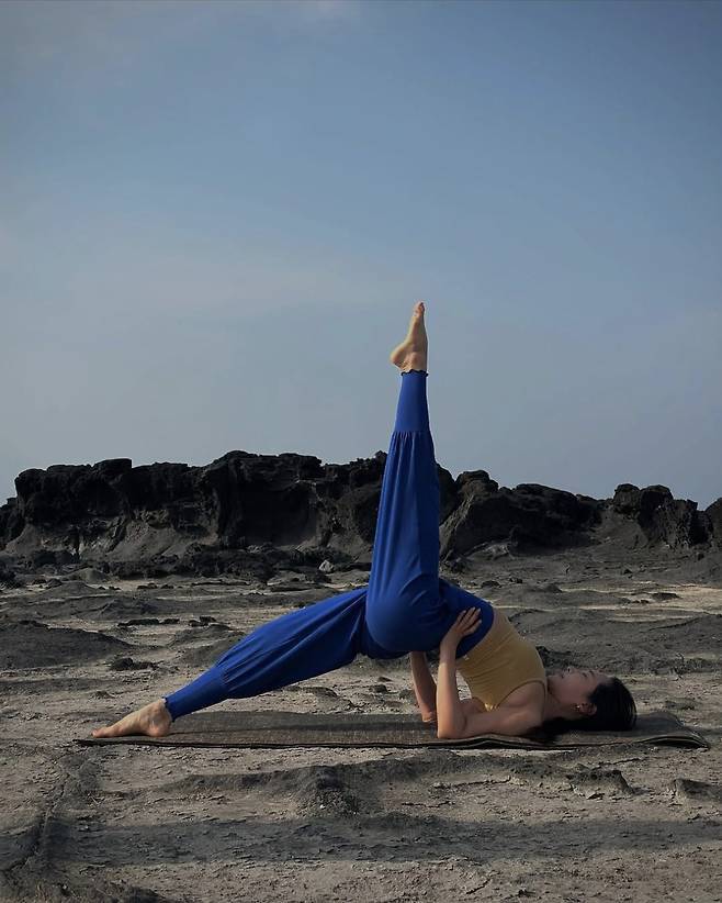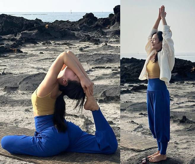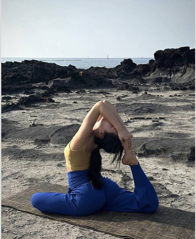 탄탄한 유연성과 균형 잡힌 보디라인이 드러나는 요가 자세는 단순한 운동을 넘어 하나의 퍼포먼스로 보일 만큼 인상 깊었고, 바닷바람에 살짝 흩날리는 헤어와 여유로운 표정은 자연과 완벽히 어우러지며 보는 이들에게 편안한 에너지를 전달했습니다.