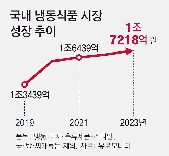 시장조사기관 유로모니터에 따르면 2019년 1조3439억 원이었던 국내 냉동식품 시장 규모는 코로나19 확산기인 2020년 1조6016억 원으로 크게 성장했다. 이후에도 지난해(1조7218억 원)까지 연평균 약 400억 원씩 꾸준히 증가했다.