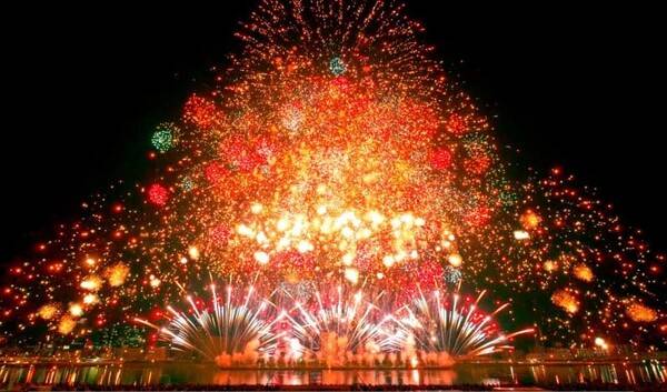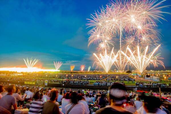전쟁 및 재해 피해자의 위령과 세계 평화를 기원하기 위한 가메오카 호즈강 불꽃축제입니다. 일본 불꽃 예술 협회에서 기획한 불꽃과 가메마루 불꽃, 대규모의 스타마인 등 각양각색의 크기로 터지는 불꽃이 아름다운 풍경을 완성해주는데요. 불꽃축제가 펼쳐지는 가메오카시는 높은 건물이 적어 축제장 인근 어디에서나 대형 불꽃을 감상하기 좋습니다.