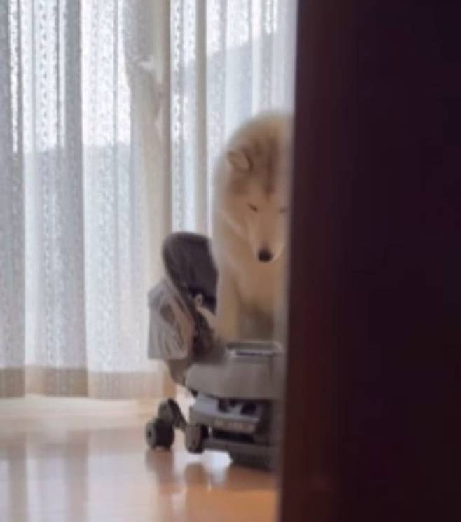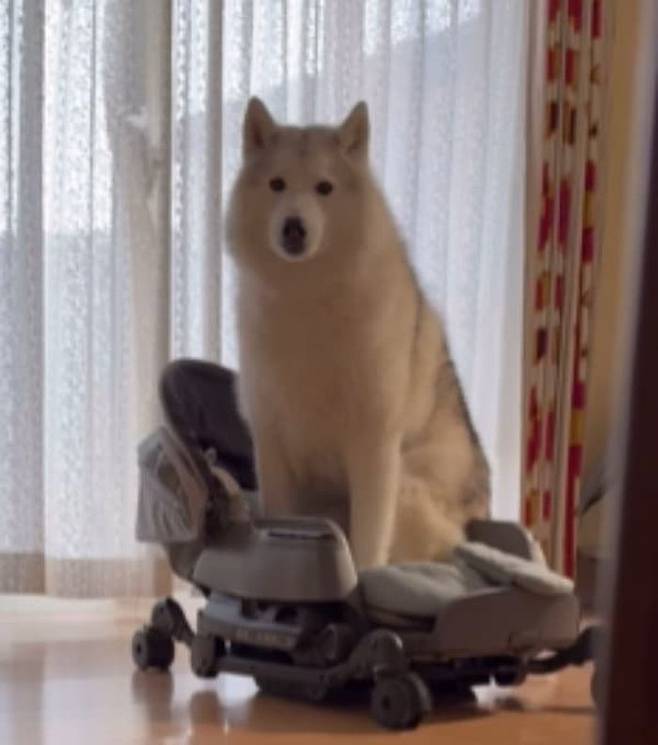 사연은 이렇습니다. SNS상에는 유모차에서 잠든 아기 앞에 자리를 잡고 앉아 지켜주는 시베리안 허스키 강아지 일상이 올라왔죠.