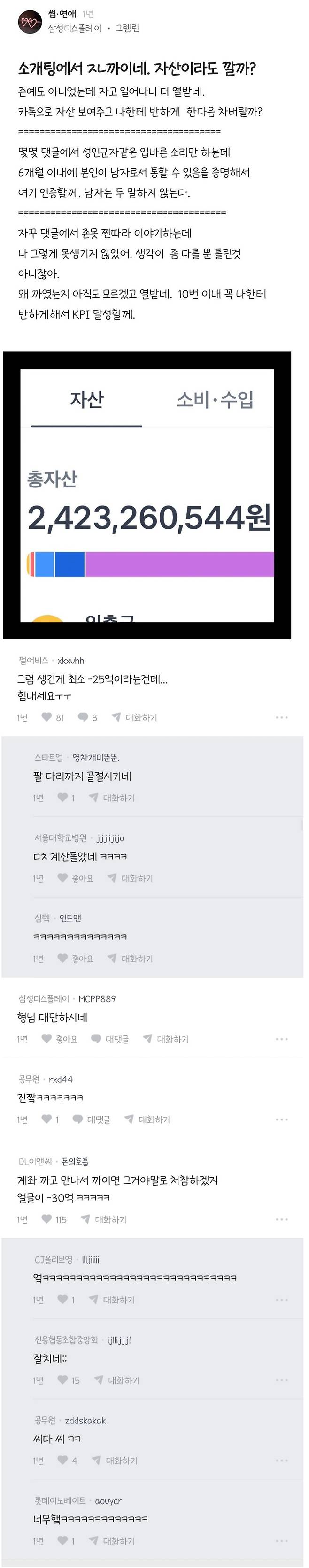 소개팅에 너무 까여서 자산 공개 하려는 남자