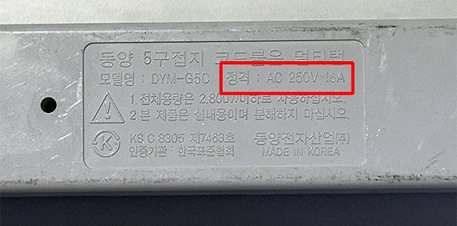 정격용량(W)= 전압(V) x 멀티탭 허용 전류(A)