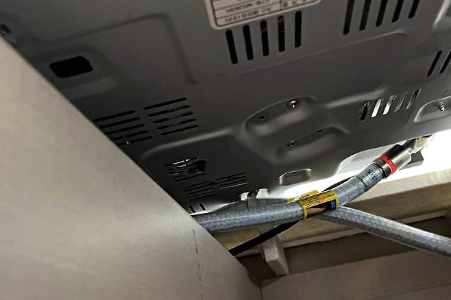 먼저 안전하게 밸브 잠금을 하신 뒤 가스레인지 밑부분에 손을 넣어 들어 올려 확인할 건데요. 혹여 잘 안 들어지면 위 사진처럼 가스레인지 아래 싱크대를 열고 그 밑에서 살짝 들어 올려주시면 될 거예요.