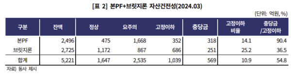 홍승기 연구원은 “충당금 적립률이 낮은 수준(55.4%)을 보여 부실 위험 확대 시 손실 부담 확대로 이어질 가능성이 높다”며 “3회 이상 만기 연장된 사업장 중 2024년 상반기 내 만기가 도래하는 사업장이 다수 존재해 대손비용 추가 부담 가능성이 존재한다”고 분석했다.