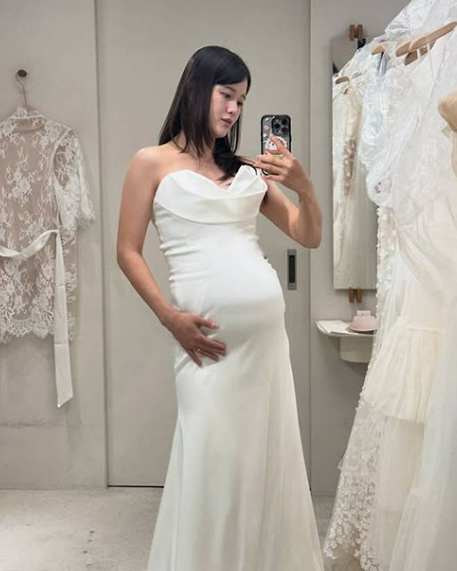 이를 본 누리꾼들은 "너무 예쁘다" "모두 잘 어울린다" "순산하시길" "그 자체로 아름답다" "사랑스럽다" 등의 긍정적인 반응을 쏟아냈다. 동료 배우 김보미 역시 "아들 배가 이리 예쁠 일인가"라고 댓글을 남겼다.