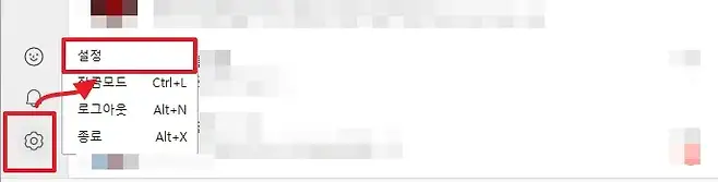 PC 버전 카카오톡에서는 모바일 설정과 별도로 관리됩니다. PC에서 카카오톡을 실행한 후 왼쪽 하단의 톱니바퀴 아이콘을 클릭해 설정으로 진입합니다.