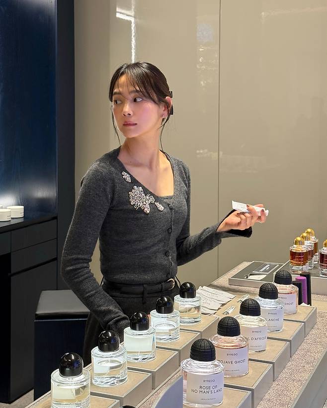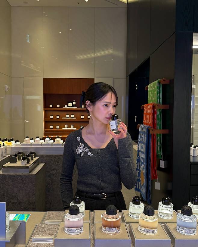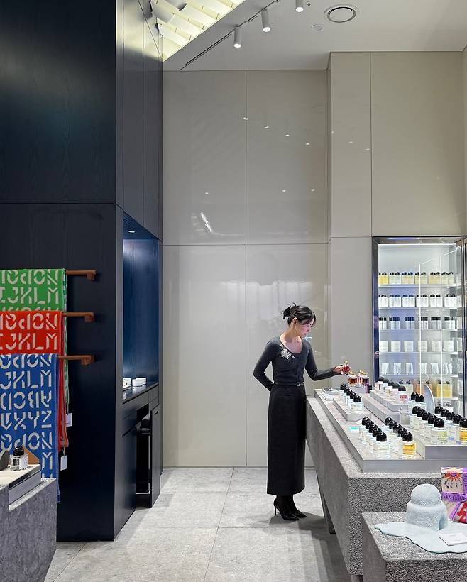 배우 윤승아는 모던하고 고급스러운 분위기의 매장에서 본인만의 단아한 매력을 발산하며 팬들의 시선을 사로잡고 있어요.