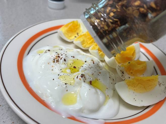 삶은 계란, 이제 그냥 드시지 마시고 그릭요거트에 몇 가지 양념을 더해서 드세요! 맛은 물론 영양까지 더욱 균형 있게 채워져서, 든든한 한 끼로 손색없습니다.