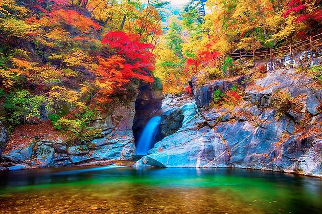 이번 10월, 가을의 풍취를 만끽할 수 있는 설악산으로 떠나 용소폭포의 비경을 즐겨보자.