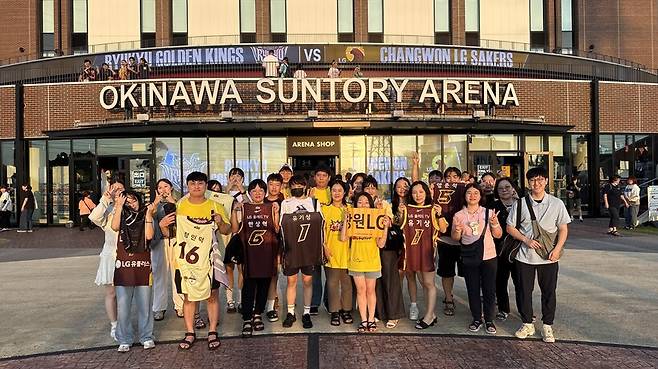 류큐는 2024-2025시즌 B.리그에서 24개 구단 중 3위를 차지한 강팀이다. 4일 LG와의 경기를 보기 위해 약 7900명의 관객이 모였다. LG 팬들은 LG를 상징하는 노란색 공식 티셔츠와 선수들의 이름이 새겨진 유니폼을 입고 경기장 한켠을 채웠다.