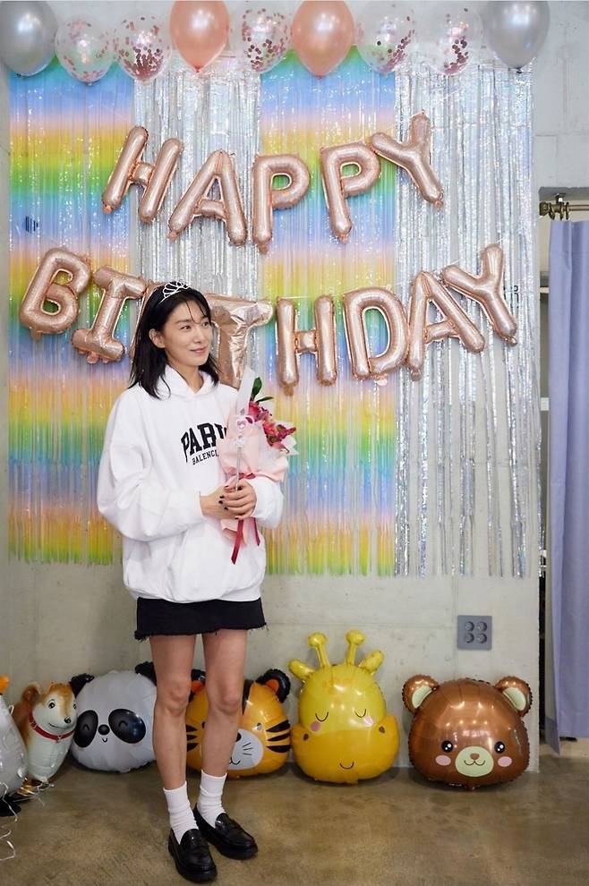 배우 김서형이 독특한 생일 파티 룩으로 눈길을 끌었습니다.