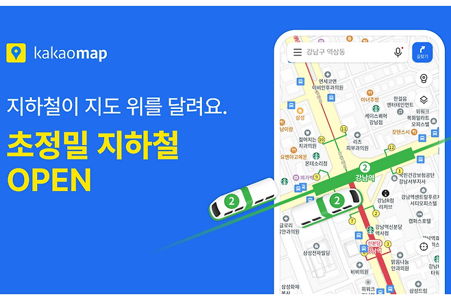 카카오(대표이사 정신아)의 위치 기반 라이프 플랫폼 카카오맵이 초정밀 지하철 서비스를 오픈했다고 9일 밝혔다. 지하철 운행정보를 분석해 실시간으로 움직이는 열차의 위치를 직관적으로 보여주는 것이 특징이다.