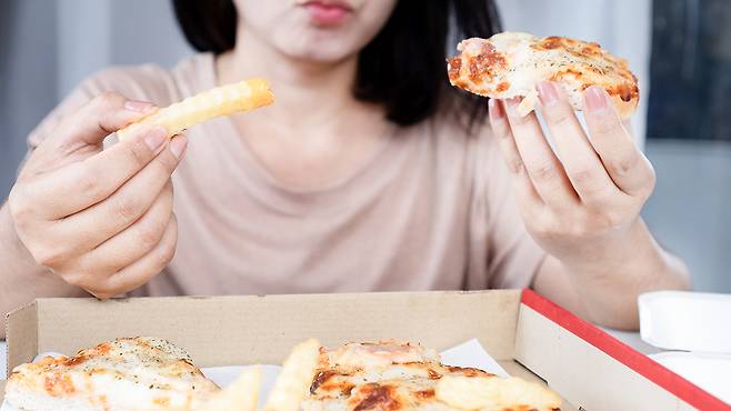 둘째, 수면과 휴식을 잘 챙겨야 합니다. 실제로 메타 분석 연구 결과에 따르면 수면 시간이 짧은 경우 살이 찔 위험이 계속 증가했다고 해요. 수면이 부족하면 배고픔을 유발하는, 그렐린 호르몬이 자극되어 식욕 조절이 잘 되지 않습니다. 수면이 충분하지 않은 사람은 평균 550kcal를 더 먹었고, 탄수화물 섭취량이 더 많았어요. 실제로도 수면이 부족할 경우 도넛, 피자, 햄버거 같은 고칼로리 음식을 잘 찾게 되는 것으로 나타났어요. 또 수면이 부족하면 스트레스 호르몬인 코르티솔 호르몬이 증가하는데요. 코르티솔 호르몬 농도가 높아지면 같은 양을 먹어도 지방으로 더 잘 저장하게 되어요. 따라서 하루 7시간 수면은 꼭 챙겨주세요.
