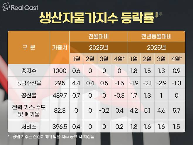 총산출 물가지수도 농림수산품·광산품 등 영향에 0.3% 하락