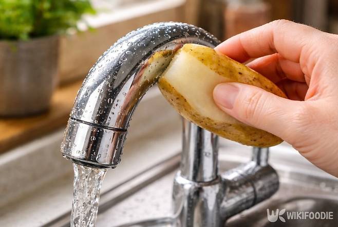 싱크대 수전과 개수대 안쪽은 물때와 비누 찌꺼기가 가장 빨리 쌓이는 곳이다. 수세미로 문지르면 흠집이 생기기 쉽고, 광택이 점점 사라진다. 이럴 때 감자 껍질은 천연 수세미 역할을 한다.