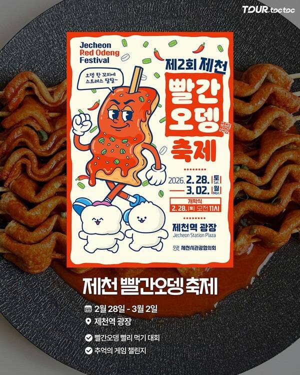 제천역 광장에서 열리는 제천 빨간오뎅 축제는 얼큰한 국물 맛이 특징인 ‘빨간오뎅’을 주제로 진행되는 3월 초 먹거리 행사입니다. 쌀쌀한 날씨에 어울리는 매콤한 국물 오뎅을 중심으로 운영됩니다.