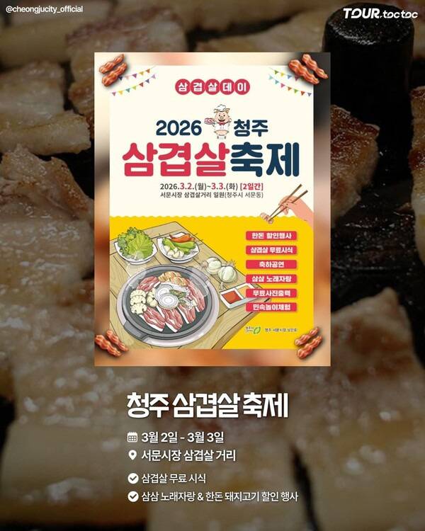 3월 초 짧은 일정으로 열리는 만큼 충북 청주 먹거리 여행을 계획하고 있다면 청주 삼겹살 축제 일정도 함께 확인해보시기 바랍니다.