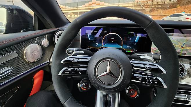 즉, 아무리 AMG라도 '스포츠'라기 보다는 럭셔리 쿠페에 가깝다는 생각이다. 기본적인 승차감이 단단한 편이긴 하나 데일리로 사용하기에 무리가 있을 것 같진 않다. 어쩌면 개인 성향에 따라 타 브랜드 전기차나 스포티 세단에 비해 부드럽게 느껴질 수도 있는 수준이다. 폭넓은 토크 밴드를 보여주는 엔진과 변속기는 여유로운 드라이빙에 최적화되어 있다. 베이스모델인 E클래스 쿠페가 '데일리 GT' 성격인 만큼, HUD나 AR 네비게이션, 서라운드 뷰, 인텔리전트 파일럿 컨트롤 등 고급 운전보조 장비들도 빠짐없이 탑재되어 있다. ADAS의 인식률도 훌륭한 편으로 '고성능' 딱지를 떼고 보아도 매력적인 쿠페임에는 확실하다.
