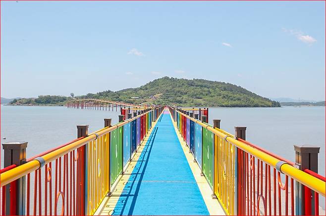레인보우교는 난간과 바닥에 일곱 빛깔 무지개색이 입혀져 있어, 다리를 걷는 순간부터 설레는 감성을 선사합니다. 푸른 바다 위로 곧게 뻗은 다리를 따라 걸으면 시원한 바람과 함께 ‘인생샷’을 남기기 좋은 포토 포인트들이 이어집니다.