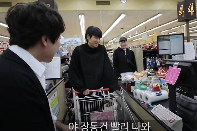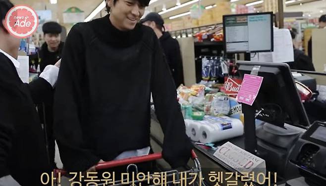 필요한 재료를 모두 담은 강동원이 계산대 앞에 섰을 때, 한 중년의 직원이 그를 보고 아는 채 했죠.
