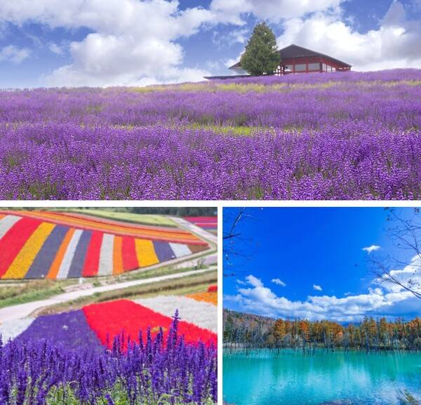 꽃이 많이 피어오르는 삿포로의 인기 여행지는 '팜 도미타'로 마치 꽃의 파도가 연상되는데요. 또한 근교인 비에이에는 아오이이케와 켄과 메리의 나무 등 자연경관을 볼 수 있어 겨울과 다른 화려한 풍경을 감상할 수 있습니다.