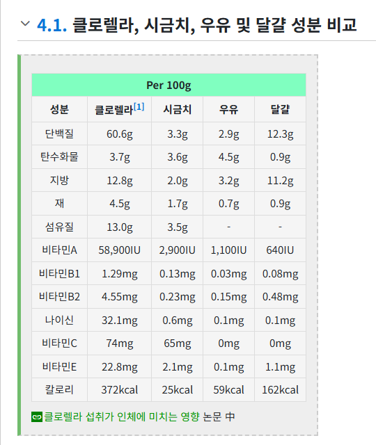셋째, 클로렐라 소스입니다.