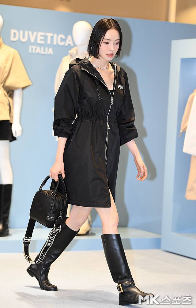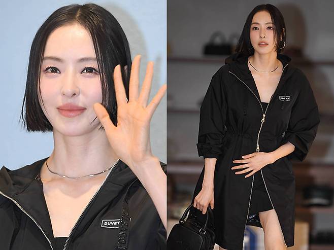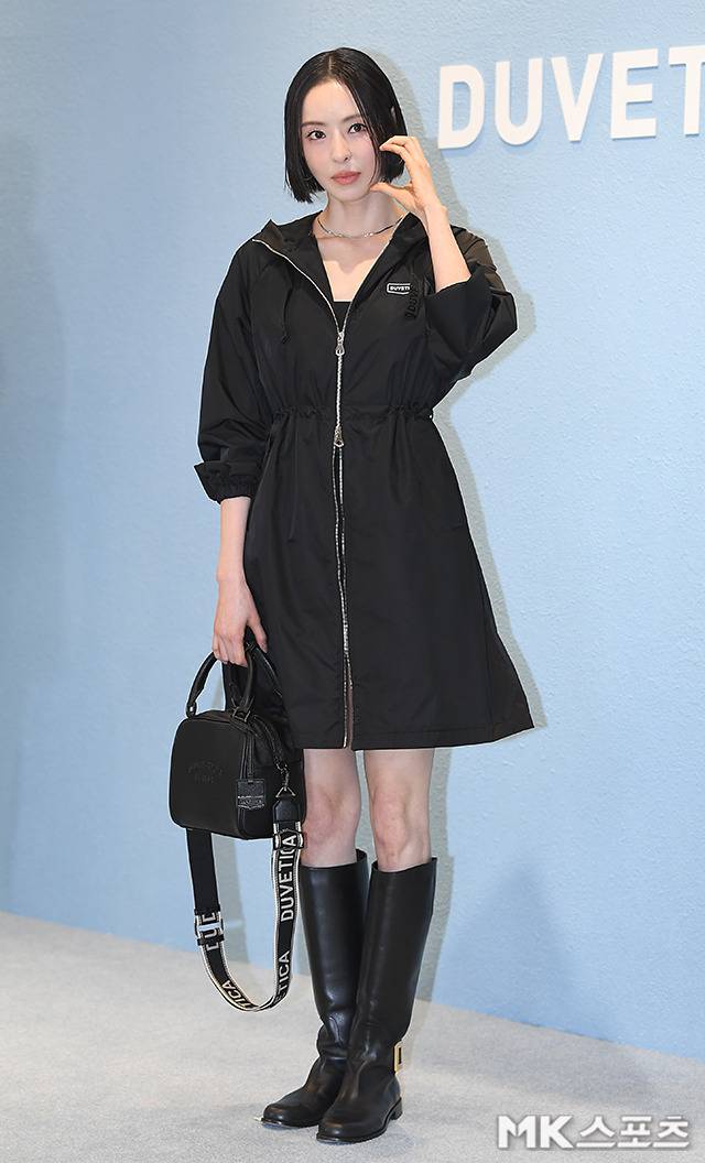 이다희는 블랙 바람막이 스타일의 롱 원피스를 착용해 시크하면서도 우아한 매력을 발산했습니다.