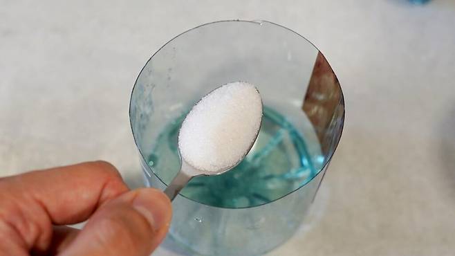 병 안에 주방세제, 설탕, 물을 넣어 섞습니다.