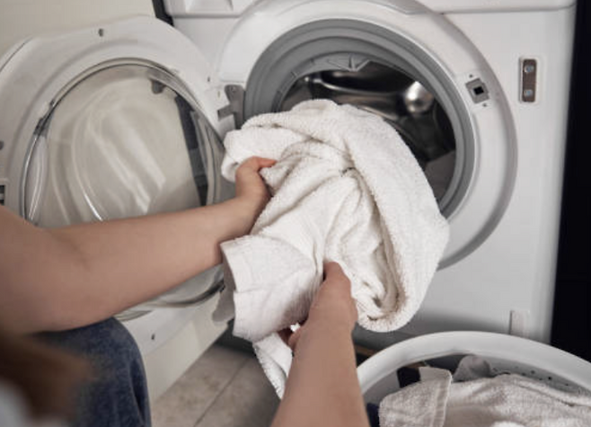 '수건 코스'나 '표준 코스'로 세탁합니다. (헹굼 추가를 권장합니다.)
