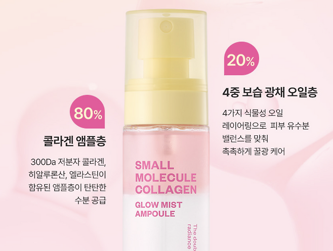 주요 성분으로 저분자 콜라겐, 히알루론산을 가지고 있으며 수분 공급과 피부 탄력을 회복시켜 줍니다.