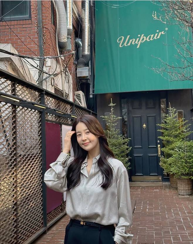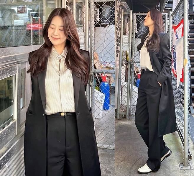 한지혜가 도회적인 분위기의 시크한 슈트룩으로 뉴욕 감성을 제대로 담아냈습니다.
