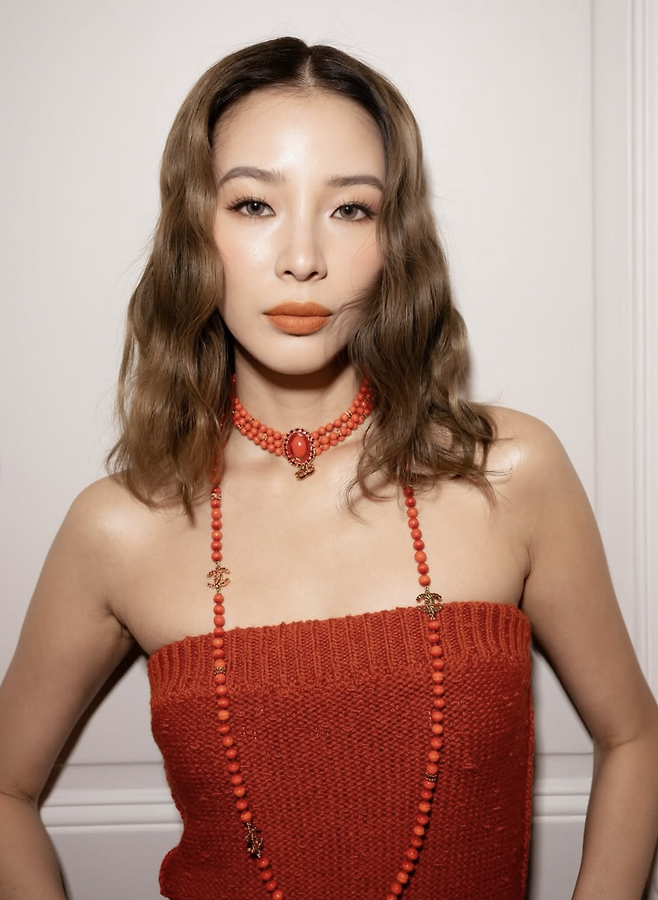 아이린이 선택한 샤넬의 아이코닉 골드백은 드레스와 조화를 이루며 고급스러운 분위기를 배가시켰다. 또한, 블랙 스트랩 슈즈는 레드와 골드 컬러와의 균형을 맞추며 세련된 마무리를 완성했다. 이 모든 요소가 조화를 이루며, 파리의 낭만적인 분위기와 어우러진 아이린의 독보적인 스타일이 빛을 발했다.