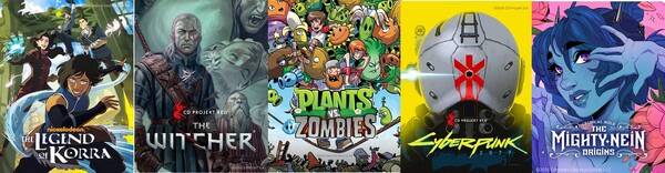 미국 전통 만화 출판사 '다크 호스(Dark Horse)'는 자사 지식재산권(IP) 5종을 네이버웹툰 영어 플랫폼 웹툰에 세로 스크롤 웹툰 형식으로 재구성해 선보일 예정이다. △위쳐 △코라의 전설 △크리티컬 롤 △플랜츠 vs. 좀비 △사이버펑크 2077 등이다. 또 다른 미국 출판사 IDW 퍼블리싱은 올해 4월 △고질라 △소닉 더 헤지혹 등 대표작을 네이버웹툰과 손잡고 웹툰 형식으로 전환하는 프로젝트를 시작해 디지털 전환 행보에 동참했다. 콘텐츠 제작사 마블도 자사 애플리케이션에서 세로 스크롤 웹툰 시리즈를 연재해 형식 다변화에 나섰다.