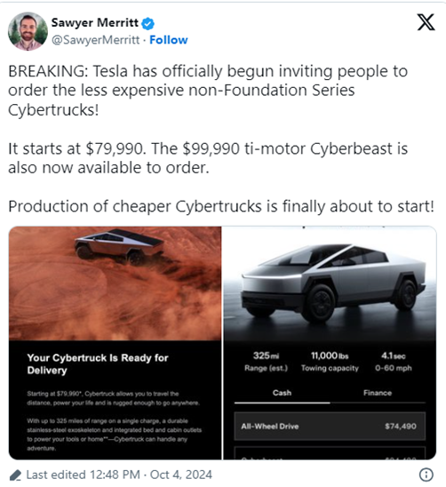테슬라가 가장 저렴한 '사이버트럭'인 기본 트림을 마침내 출시했다.