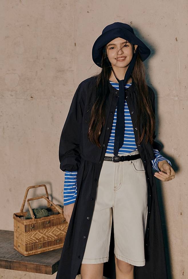 차분한 네이비와 화사한 아이보리, 애플그린 컬러로 구성했고 뒷면에는 머리를 깔끔하게 정리할 수 있는 트임 디테일도 넣어 실용성을 높였다.