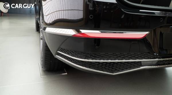 후면부는 히든 타입 머플러를 적용해 하단에 머플러를 노출하는 대신 제네시스의 크레스트 그릴의 디자인에서 착안한 V형상을 크롬 재질로 적용해 미래지향적인 이미지를 완성한다.