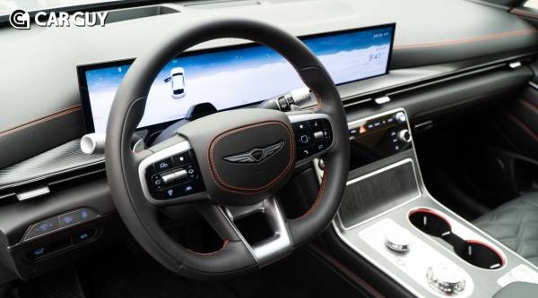 편안하면서도 깨끗한 느낌을 강조한 수평형 레이아웃에 클러스터와 AVN 화면이 하나로 연결된 27인치 통합형 와이드 디스플레이를 적용해 세련된 첨단 공간의 이미지를 연출했다.