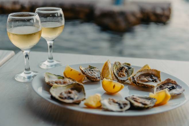 제철을 맞이한 굴은 주류 중에서는 화이트 와인 또는 샴페인과 주로 페어링(음식궁합이 맞는 조합)된다.