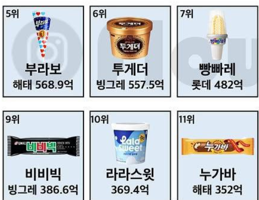 빙그레가 TOP10 중 4개 제품으로 강세!