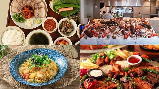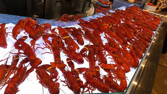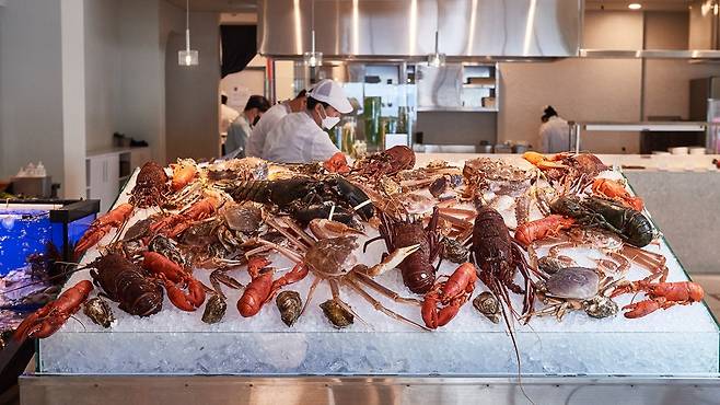 랍스터를 무한으로 즐길 수 있는 프리미엄 뷔페 '바이킹스워프'. 해산물 애호가라면 반드시 체크해야 할 맛집이에요. 랍스터는 물론 연어, 각종 즉석 해산물 요리부터 디저트 바와 전통주까지 전부 무제한! 기념일이나 연말 모임, 회식 자리로도 손색없어요.