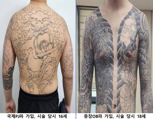 ◆ 최순호> 저희가 이번에 수사를 하면서 이례적인 문신을 받은 미성년자가 총 32명이었는데요. 그중에서 총 4명이 광주 지역 최대 폭력조직인 국제 PJ파나 충장 OB파에 가입한 사실을 확인을 했습니다. 그런데 확인을 해봤더니 조폭 가입 그리고 조폭 문신 당시에 가장 어렸던 학생은 중학교 3학년, 만 나이로는 16세였습니다.