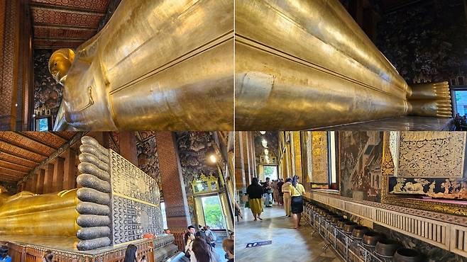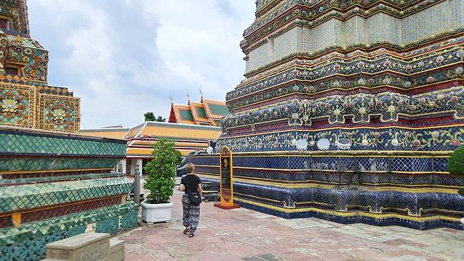 왓 포(Wat Pho)는 방콕에서 가장 크고 오래된 사원으로 왓 포타람(Wat Photharam)을 줄여서 부르는 말로 보리수 사원이라는 뜻입니다. 46m의 황금 와불이 있어 와불사라고도 하며 태국 전통 마사지 스쿨과 박물관이 있어 마사지로도 유명합니다. 왕궁과 사원은 무릎 위로 올라가는 치마와 바지, 민소매 셔츠 복장은 출입이 제한됩니다.