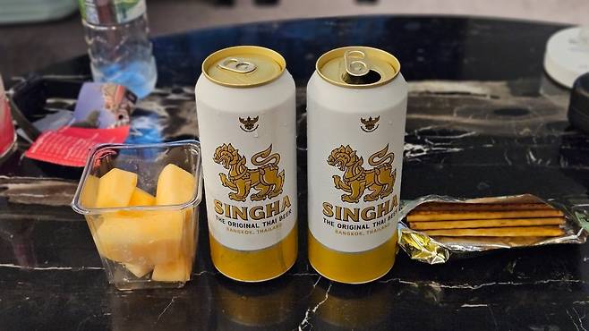 호텔로 돌아오는 길에 조금 아쉬워 편의점에 들러 싱아 맥주와 안주를 사서 한 잔 더하고 잤습니다.