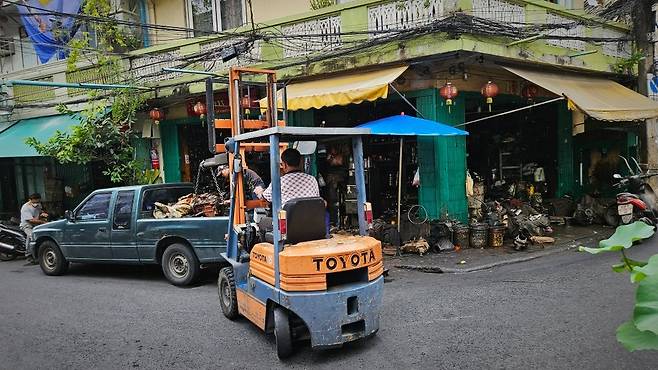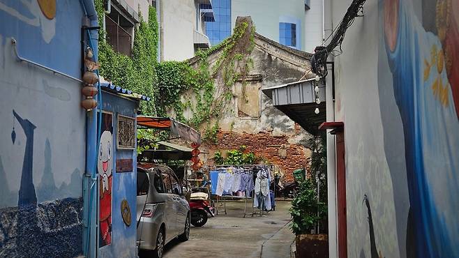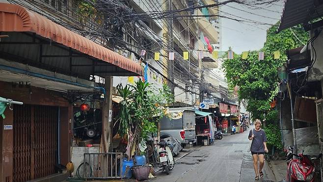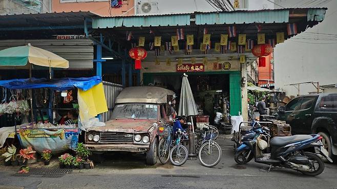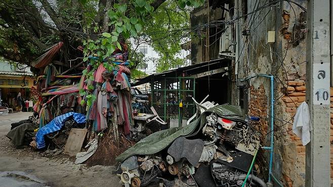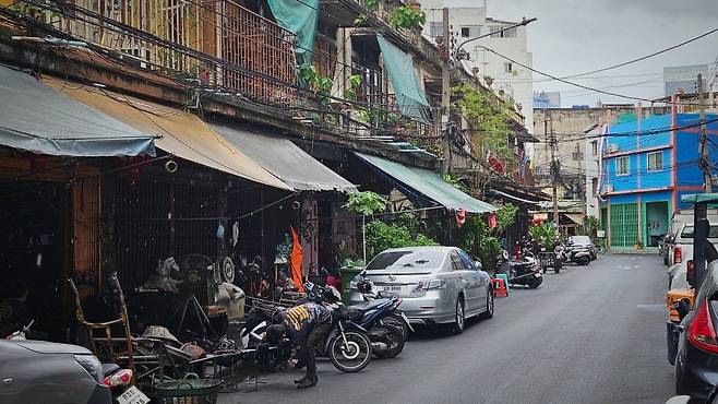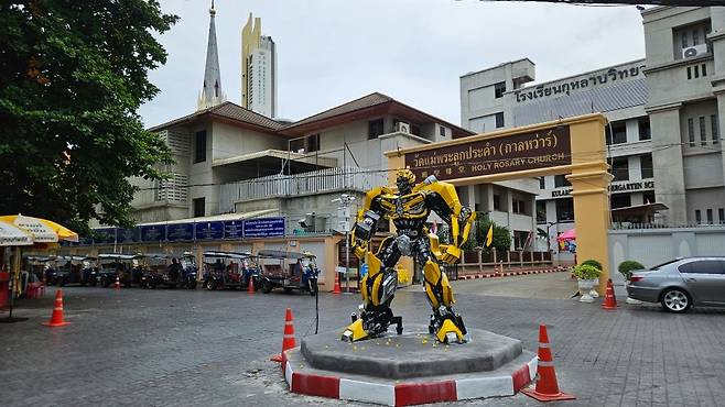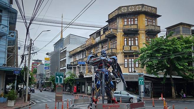 다음에 갈 곳은 태국의 문래동 거리인 딸랏너이입니다. 룸피니역에서 MRT를 타고 3정거장 떨어진 후알람퐁역에서 내려 걸어갔습니다. 가는 길에 소화도 시킬 겸 왓 뜨라이밋과 도심 거리를 구경하며 걸었습니다. 딸랏너이에는 트랜스포머 동상이 2개가 있네요. 트랜스포머 영화 촬영지인가 봅니다. 철공소 풍경과 바쁘게 움직이는 일상 풍경을 구경하며 벽화 거리도 구경했습니다.