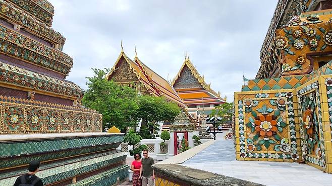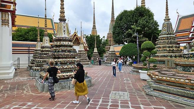 비행기 연착으로 새벽에 도착한 후 호텔에서 바로 잠들고 다음날 첫 일정을 시작했습니다. 첫날은 그랩 택시를 타고 왕궁으로 향했습니다. 택시에서 내려 왕궁 매표소로 향하고 있는데 관광 경찰로 보이는 사람이 오늘은 왕궁 외국인 관람이 끝났다고 다른 투어를 권유합니다. 투어는 사양하고 원래는 왕궁과 왓 포 일정이었으나 긴급 변경하여 왓 포 방문 후 왓 아룬까지 가기로 변경했습니다. 이때는 몰랐지만, 왕궁은 열려있었으며 비싼 투어로 피해를 입었다는 후기를 귀국 후 보게 됩니다.