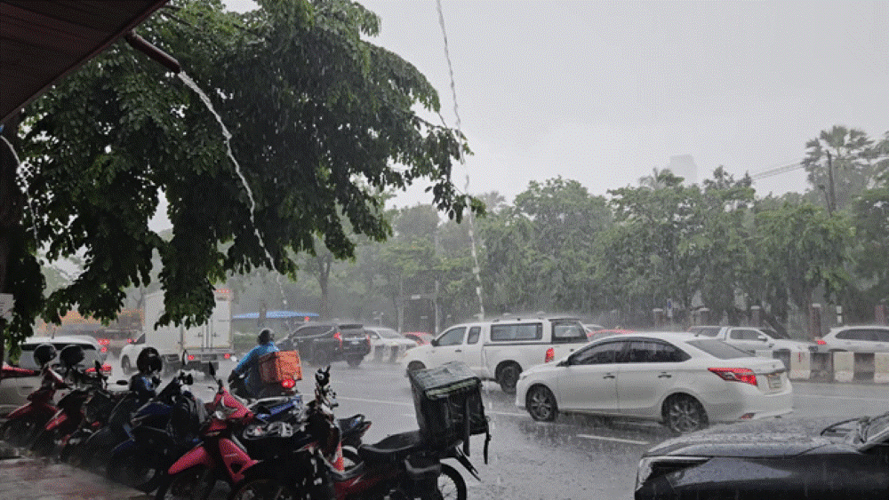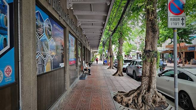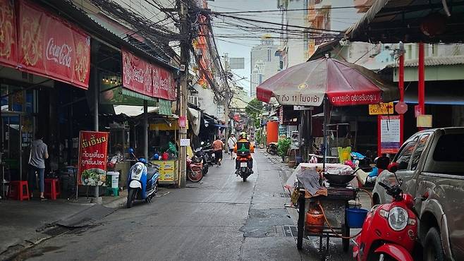 점심 먹으러 간 곳은 한국인들에게 널리 알려진 노스이스트입니다. 식당 앞에 도착하니 대기 줄이 있습니다. 대부분 한국분들이네요. 대기 중에 쏟아진 스콜에 비멍을 하며 방콕 거리 풍경을 즐겨봅니다.