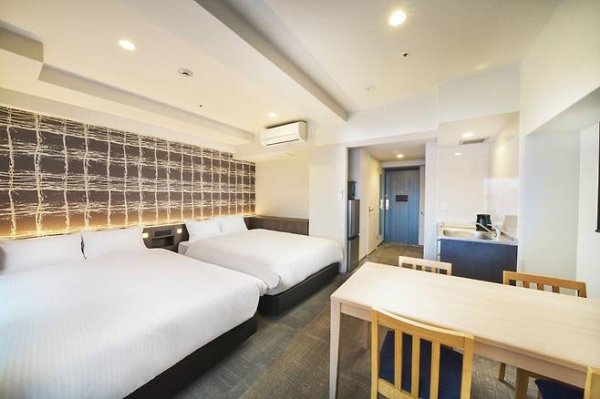 코코호텔의 플랫은 로컬 숙박 체험에 중점을 두고 있으며, 각 객실에는 주방 시설과 세탁 및 건조기가 완비되어 있고 더블룸이 균일하게 구비되어 있으며, 4인, 어린이나 체구가 작은 경우 최대 8인까지 투숙할 수 있어 가족이나 단체 여행객에게 매우 적합합니다.