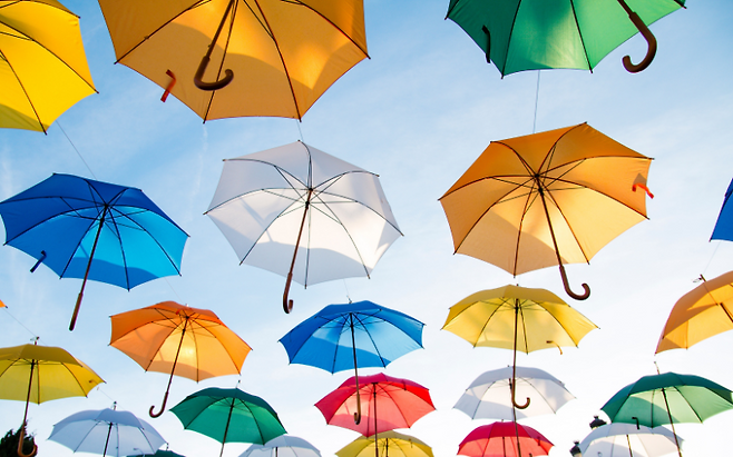 1. 집에 일회용 우산이 쌓여 있다