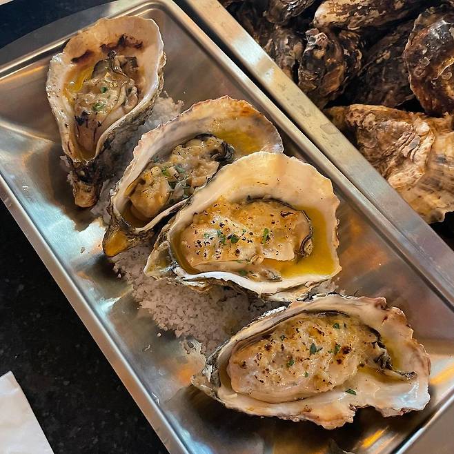 신선한 오이스터 플래터를 즐길 수 있는 곳으로 당일 직송으로 공수한 다양한 지역의 굴을 종류별로 즐길 수 있는 것이 특징이다. 여수, 태안, 통영, 강진 등 각 산지의 굴맛이 어떻게 다른지 하나하나 느껴볼 수 있는 특별한 경험을 선사한다. 기호에 따라 소스를 뿌려 손질된 상태 그대로 입에 넣으면 '향긋하다'라는 말이 절로 나오는 곳. 워낙 인기 있는 맛집이라 예약이 필수인 곳으로 2인 방문 시에는 온라인으로, 3인 이상부터는 유선 전화로 예약이 가능하니 참고하자.