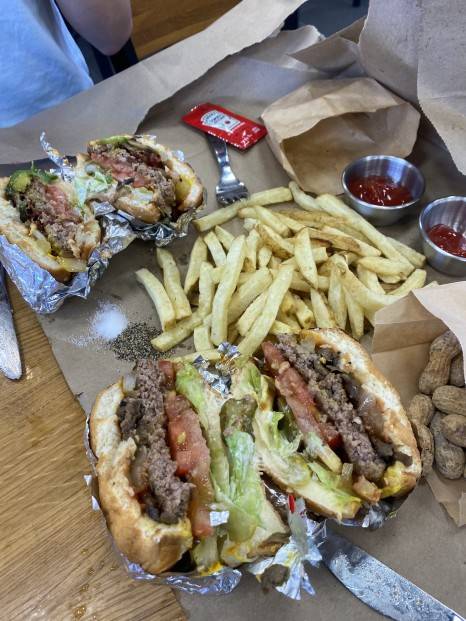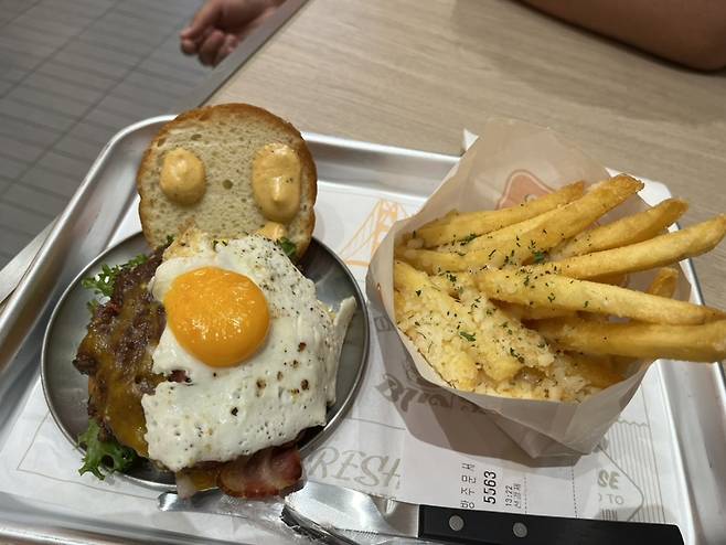 쉐이크쉑, 인앤아웃버거와 함께 🗽미국 3대 버거로 불리는 파이브가이즈. ‘강남 버거 전쟁🥊’의 서막을 연 주인공이다. 지난 6월 개점 후 일주일간 1만 5천 개의 버거가 팔렸다고 하니 그 인기를 가늠해 볼 수 있다. 파이브가이즈는 매일 아침 직접 만드는 패티와 100% 🥜땅콩기름으로 튀긴 감자튀김으로 유명하다. 매장 주방에 냉동고가 없는 것이 특징인데, 재료 신선도에 대한 자부심😎이 느껴지는 부분이다. 메뉴는 더블패티가 기본인 버거 4종을 중심으로 핫도그, 샌드위치, 밀크쉐이크, 프라이즈 등을 판매한다. 개인 취향에 맞게 커스텀할 수 있는데, 무려 25만 가지 방법으로 ‘나만의 버거🍔’를 만들 수 있다고. 또 한 가지 흥미로운 사실은 구운 땅콩을 무료로 제공한다는 점인데, 버거를 기다리는 동안 심심한 입을 달랠 수 있다.